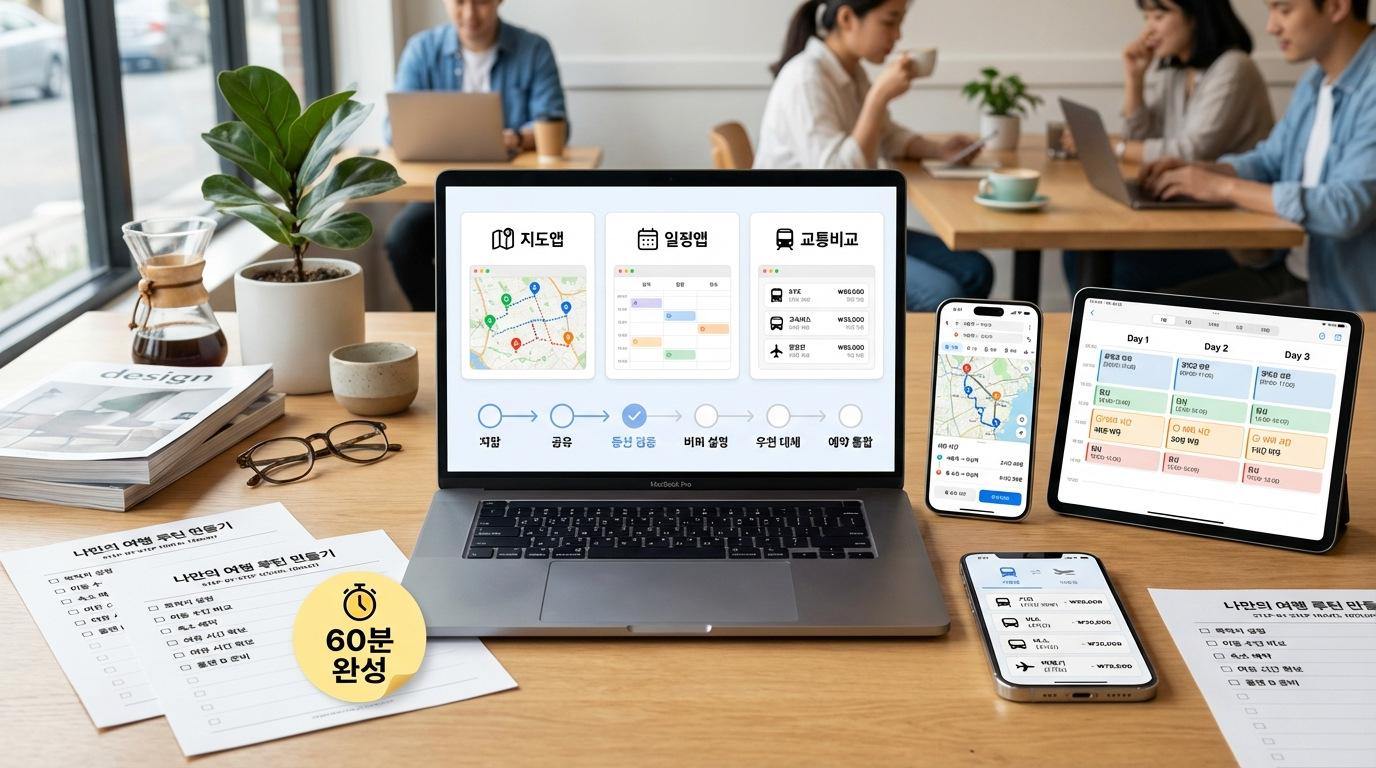 여행 준비에서 가장 많은 시간이 새는 구간은 ‘장소를 고르는 일’이 아니라 ‘동선을 정리하는 일’입니다. 여행 루트 설계 도구를 제대로 쓰면 저장한 장소가 일정표로 이어지고, 당일 변수(비·혼잡·지연)에도 코스가 쉽게 무너지지 않습니다. 이 글은 지도·일정·교통 도구를 연결해 60분 안에 루트를 완성하는 절차와 동행자 공유·권한 관리까지 실수 방지 기준으로 정리합니다.